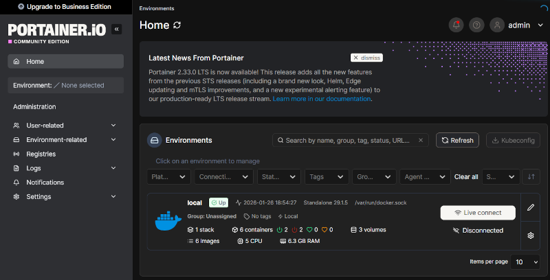 Una herramienta fantástica para controlar nuestro proyectos en Docker desde la consola web es Portainer. Aunque no es impresincidble y esta parte os la podéis saltar, siempre viene bien.
