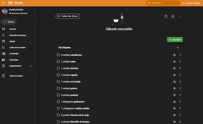 Mealie es un gestor de recetas , planificador de comidas y lista de la compra autoalojado, con una backend RestAPI y un frontend reactivo, integrado en Vue, para una experiencia de usuario agradable para toda la familia.