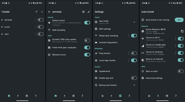 Diferentes capturas de WGTunnel para Android (Fuente: https://github.com/wgtunnel/android)